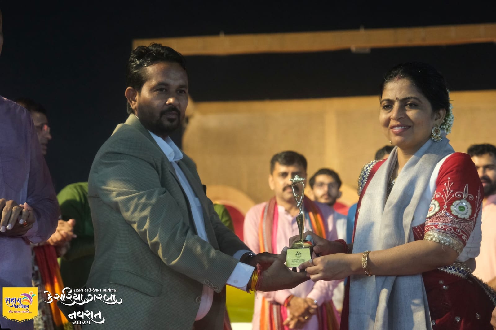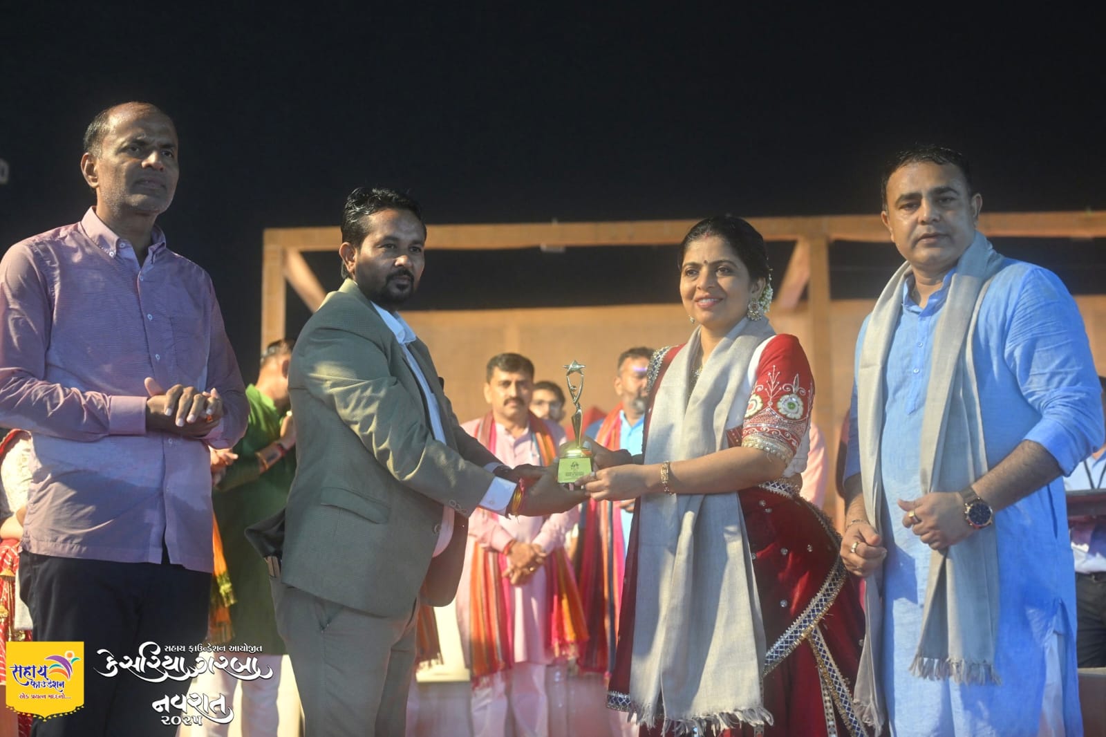 “You were honoured with an India Record certificate by the Global Excellence Book of Records for performing the Aarti with 50,000 lamps during the Kesariya Navratri Mahotsav, presented by Honorable MLA Smt. Ritaben Patel of Gandhinagar.”
